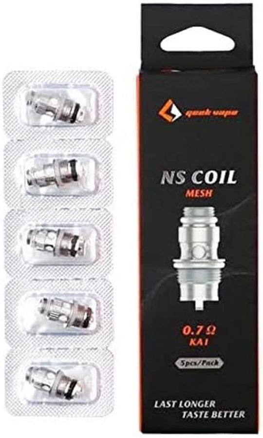 كويل GeekVape NS 0.7Ω مصمم لتقديم طعم أقوى وبخار أدفأ مع سحب MTL مقيد. متوافق مع جهاز GeekVape Frenzy فقط وغير مناسب لجهاز Flint. متوفر في باك 5 كويلات، مناسب للاستخدام اليومي في فيب مصر ومتوفر حاليًا في مصر بسعر يناسب اسعار فيب.