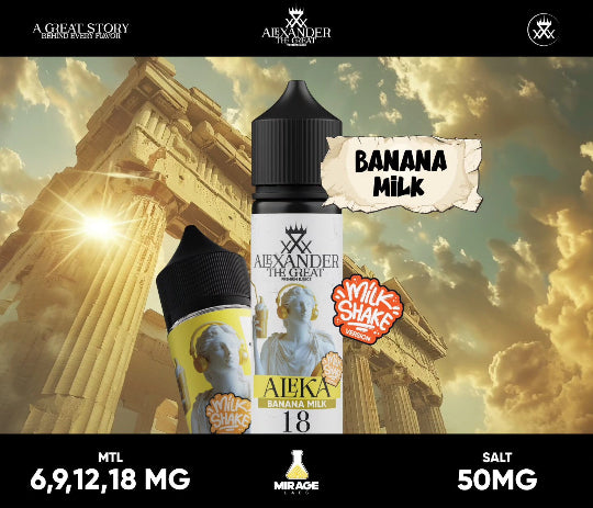 Satisfy your cravings with the smooth and creamy ALEXANDER ALEKA SALT ELIQUID, a standout dessert blend in the فيب مصر market. This e-liquid delivers the authentic, velvety taste of a classic banana milkshake, combining ripe, sweet bananas with a rich, frothy milk base. Designed for a premium vape Egypt experience, it offers a thick and satisfying MTL draw that captures the essence of a chilled diner treat at the افضل اسعار فيب في مصر.